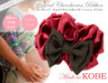 親子お揃いシュシュ(ペアヘアアクセサリー)専門店ジュメル【jumelle】オリジナルピンクレッドチョコブラウンリボンの赤ちゃんサイズ・ベビーシュシュ(ラトル)です。