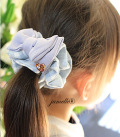 華やかな印象のクールで可愛い淡いライトブルーギンガムチェックのガールズ(お嬢様サイズ)シュシュが入荷しました。