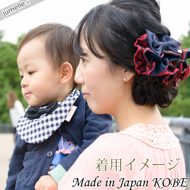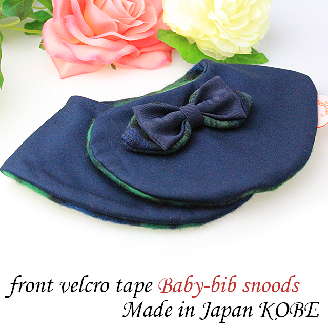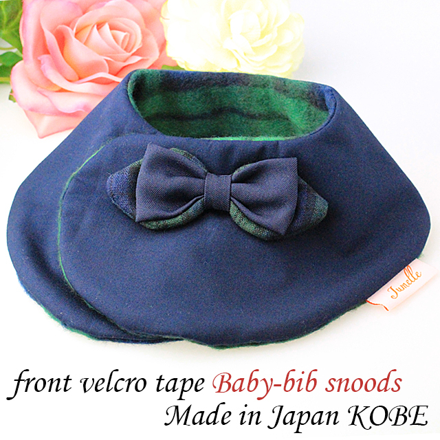また、紺とタータンチェックのミックスカラーの蝶ネクタイがとっても男の子らしく、用途や場所を問わず付け襟風にもおしゃれで、寒い季節を暖かく使えます。