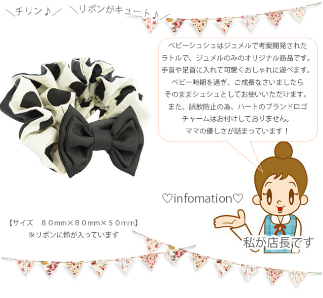 頑張ったママと、産まれた大切なお子さまへ、ジュメルの親子お揃いシュシュと、出産経験があり、現在子育て中のジュメルスタッフが『ママと子どものことを考えて』厳選した『こんなの欲しかった!!』商品とともに可愛くラッピングして、華やか可愛いシュシュバスケットとしてお届けいたします。