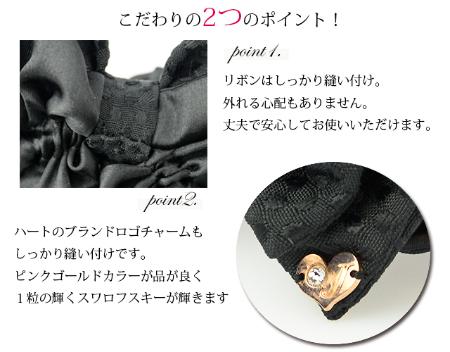 親子お揃い(ペアヘアアクセサリー)専門店ジュメルブラックサテンと黒ドットリボンガールズシュシュ【出産祝い/誕生日/子ども】詳細
