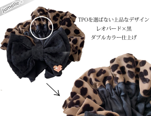 【親子お揃いプレゼント】エレガントレオパードシフォンとブラックリボンガールズシュシュ【出産祝い/誕生日/クリスマス】 詳細2