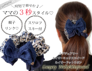 お選び頂いた(料金;別途)ジュメルの親子お揃いシュシュを、シュシュ袋(無料)に品良くお入れして、バスケットに可愛くお入れ致します。